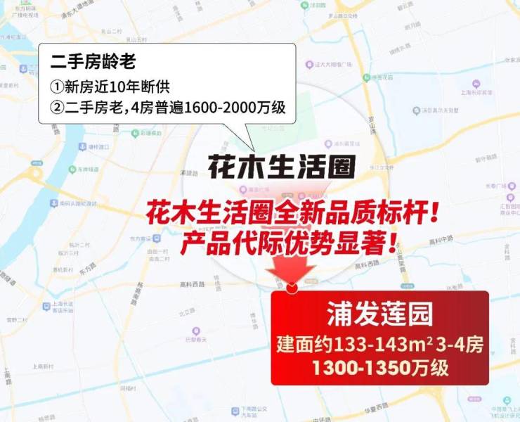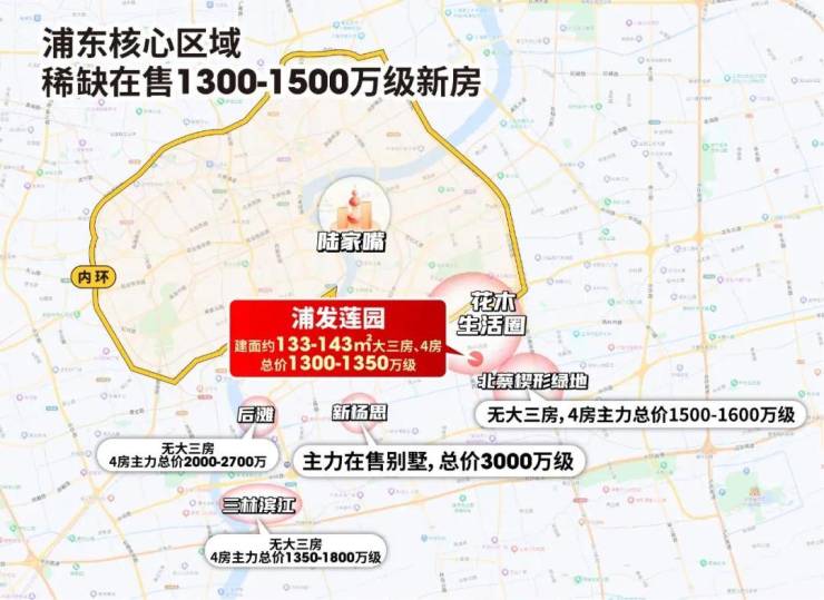 地段上:内环旁、三轨交,6站陆家嘴;左拥花木成熟配套,右接北蔡发展红利,牢牢占据浦东核心生活圈。
