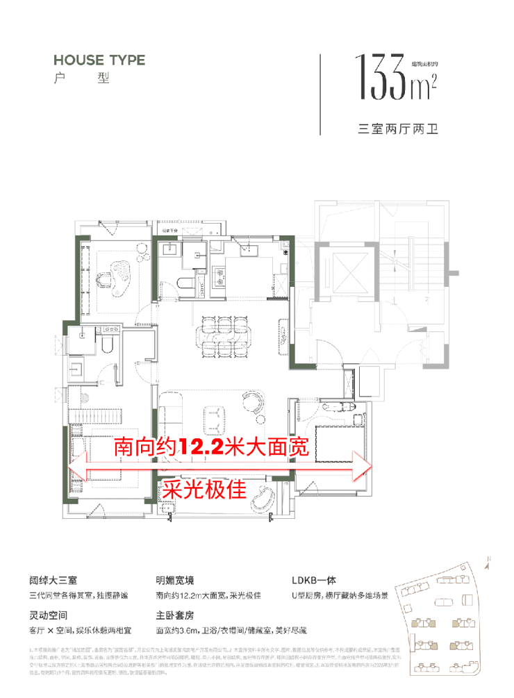 建面约133㎡改善大三房,不做四房,坚持以尺度换舒适度。