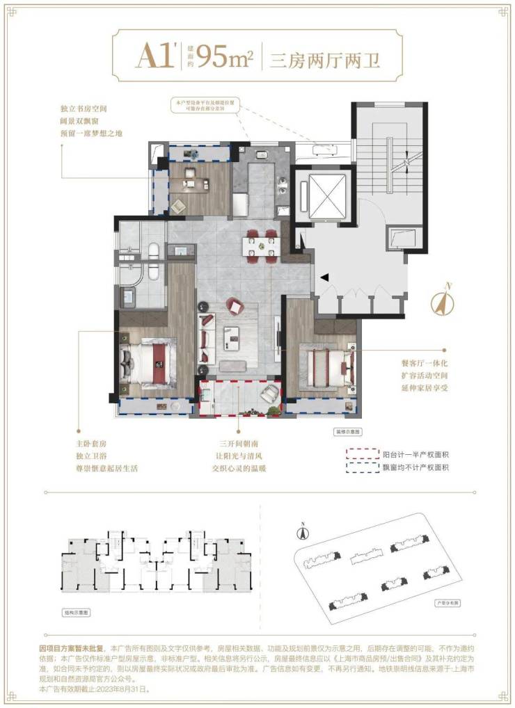 根据出让合同显示,项目需配建5%以上的保障性住房,全装修比例50%,要求中小套户型不得低于住宅总建筑面积的60%,容积率2.0,限高50米,住宅套数下限496套,套均面积约95㎡!