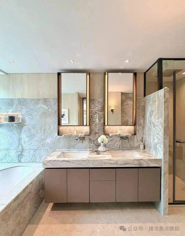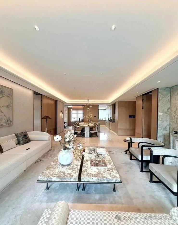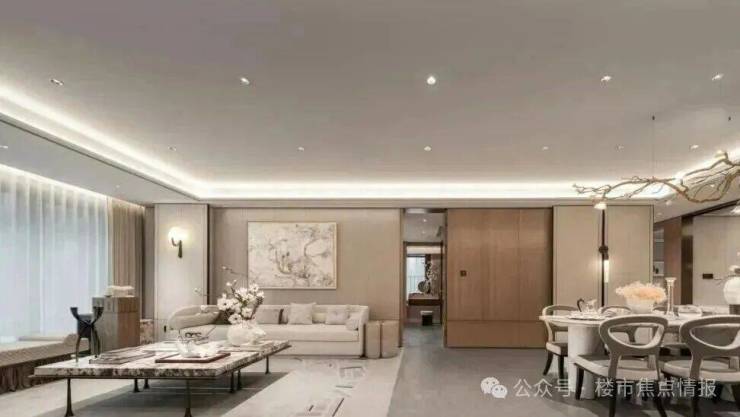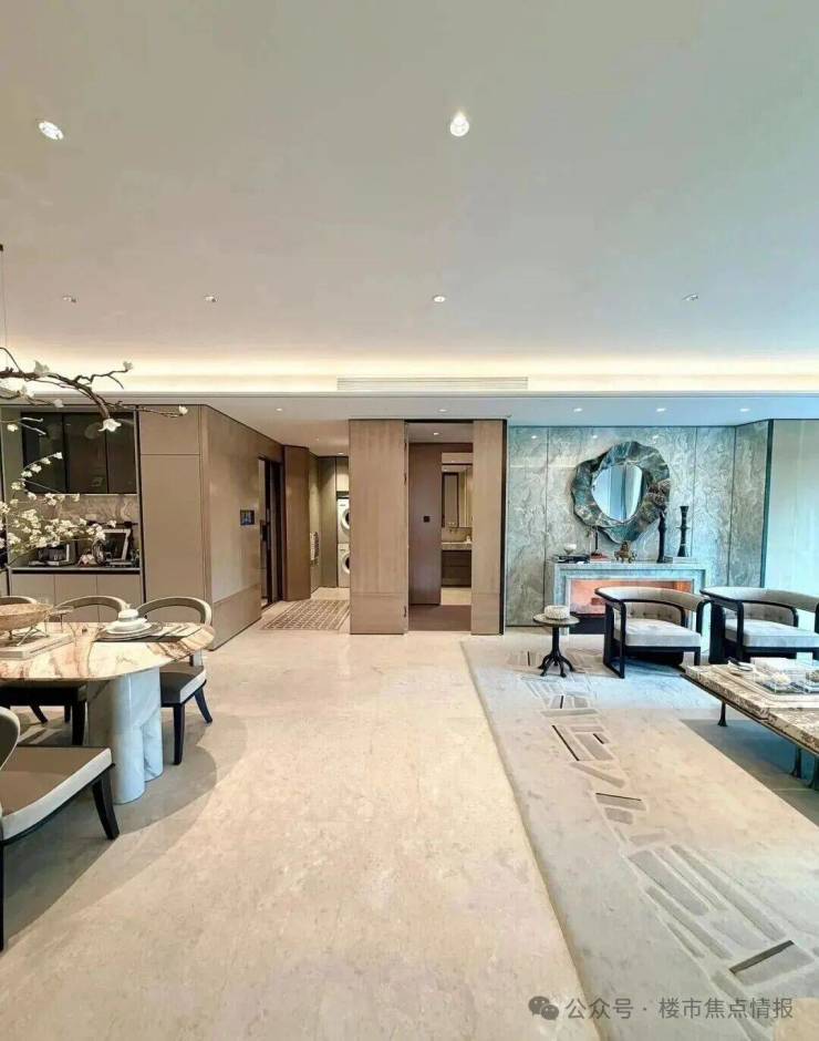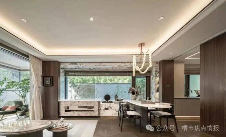 同时也得益于两个地块融合在一起形成了完整地块,项目打造了约160米超长中轴,约4000㎡中轴景观,约700㎡落玉水院、下沉庭院以及私属入户花园。