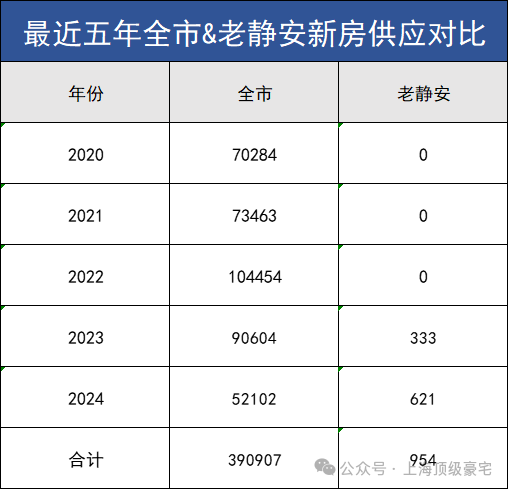 过去五年,全上海一共供应约39万套新房,位于老静安的仅954套,占总供应量的约0.24%,几近于无!