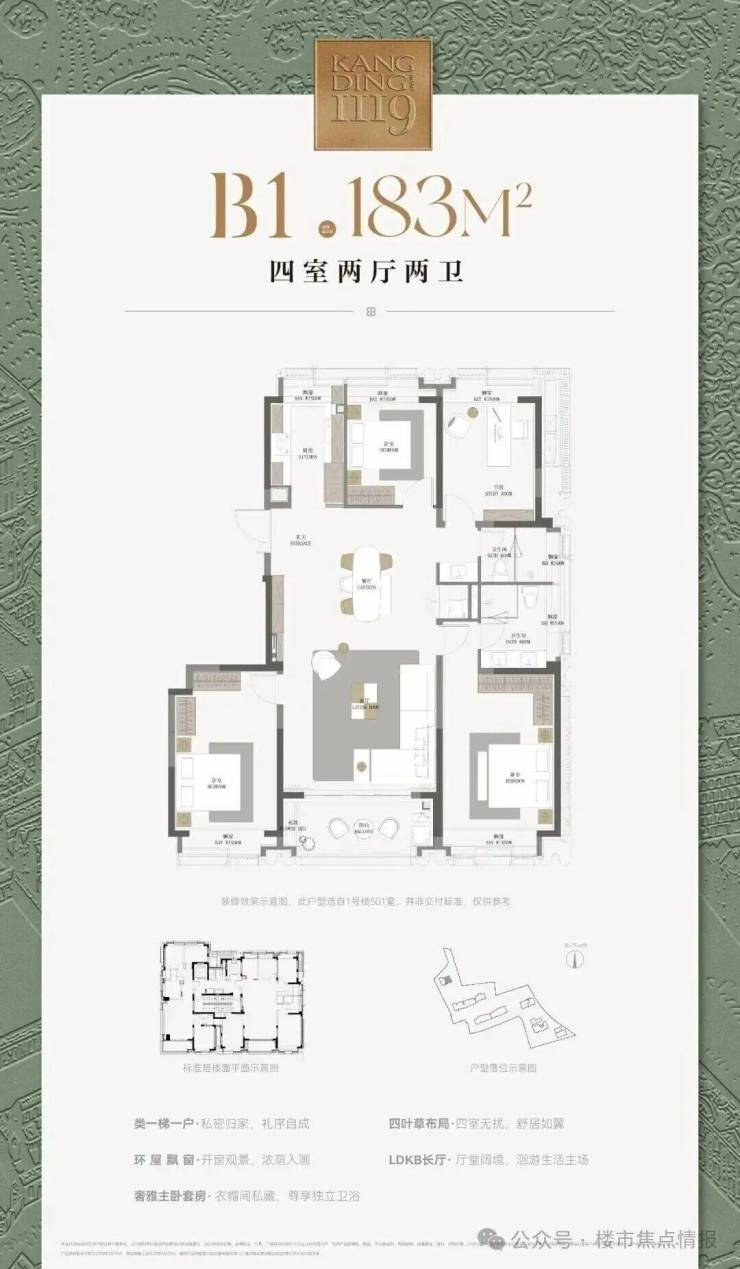 建面约177-183-238㎡四房户型,6重采光面,室室皆阳,是对于预算更高的客户,招商给出的又一全新选择。
