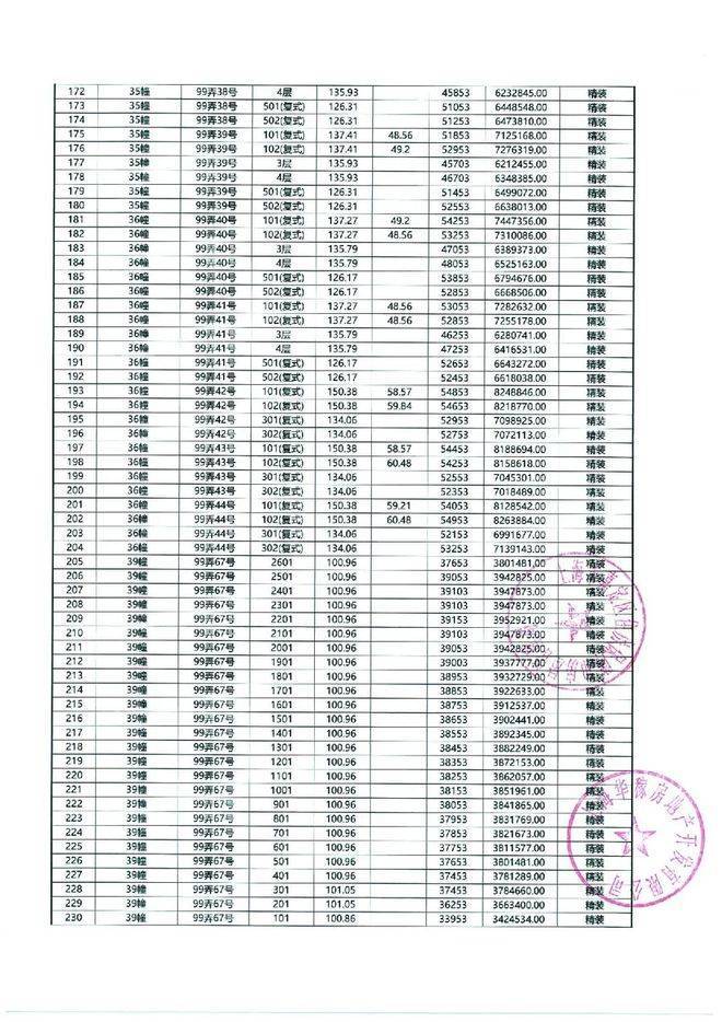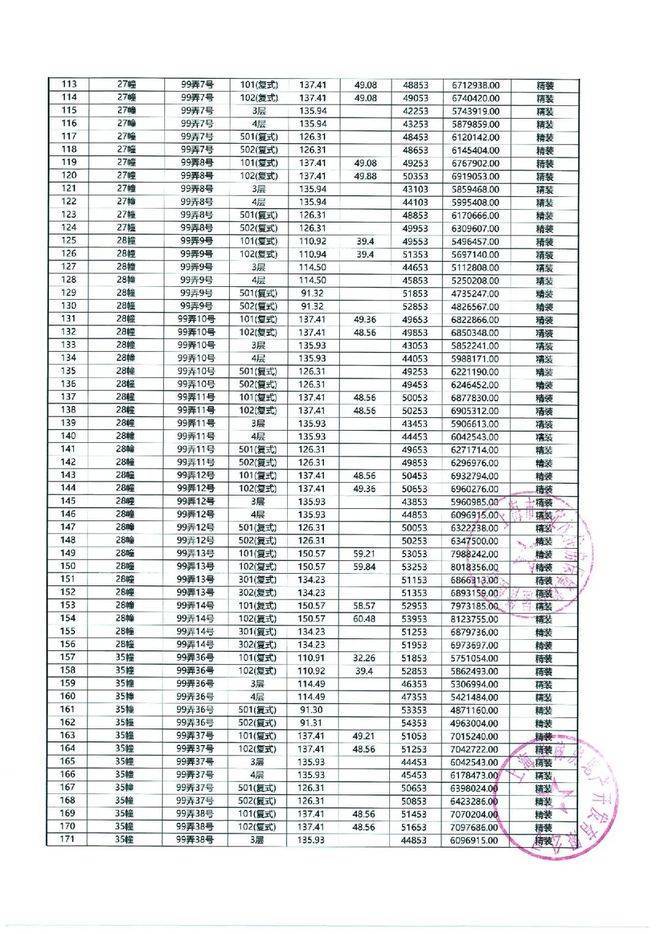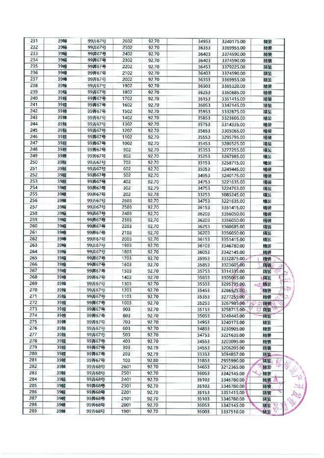 以下为一房一价表