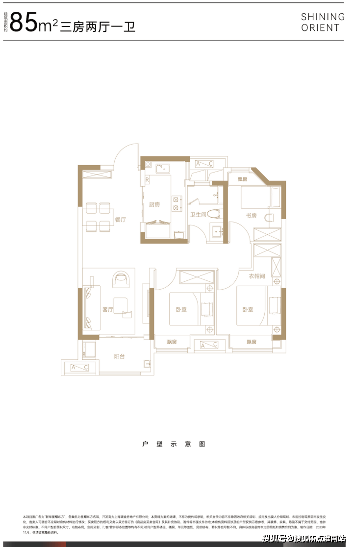 总体来看,85㎡户型上车门槛不高,户型空间舒适,格局方正,一点也不局促,很适合预算有限的小年轻刚需上车。