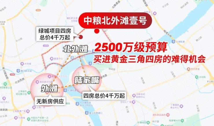 中粮北外滩壹号同样属于北外滩红线范围里,与绿城项目几乎呈现掎角之势,2500万级预算即可一步到位185㎡豪宅四房,4千万以内228㎡户型也能随便选,无疑是北外滩错过再无的抄底机遇!