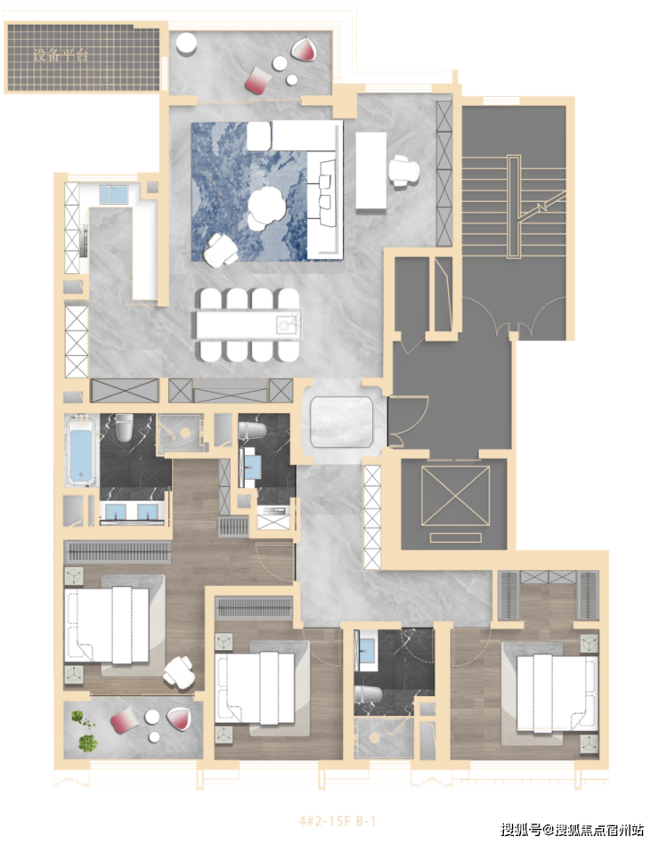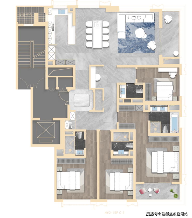 其中3#为超高层,北向可观小区绿化和苏河景观,高区可瞰三件套盛景。