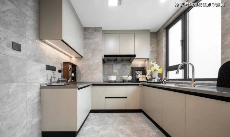 厨房尺度也进行了升级,如此宽敞的U型厨房,三五好友聚会时,即便两个人同时煮饭炒菜也会显得非常从容。