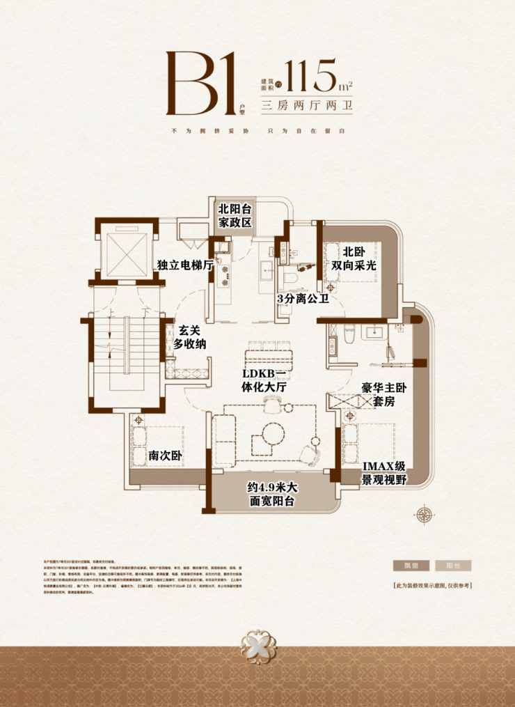 2、建面约115㎡:上海同面积段产品,罕有的约4.9米宽厅!