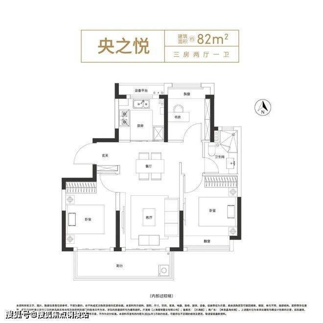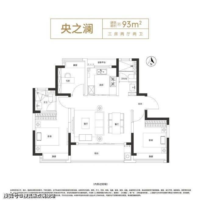 约11.3米南向三开间,拥享阳光,约5米的横厅联动餐厅,形成“客餐一体”的互动空间,让不足百平的三房也能拥有大尺度的视觉享受。