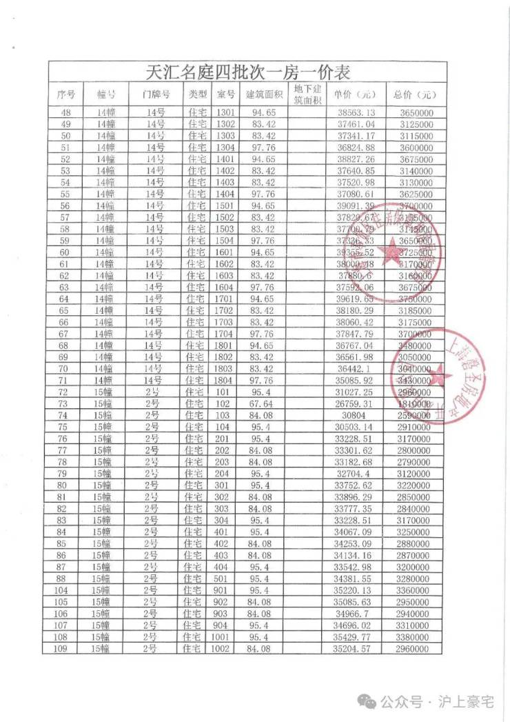 象屿江湾悦府一房一价表: