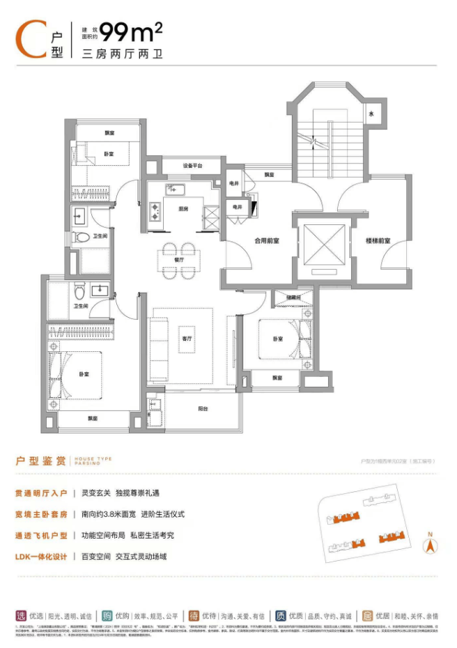 项目将加推1号楼,户型为建面约99㎡3房,标配类一梯一户。