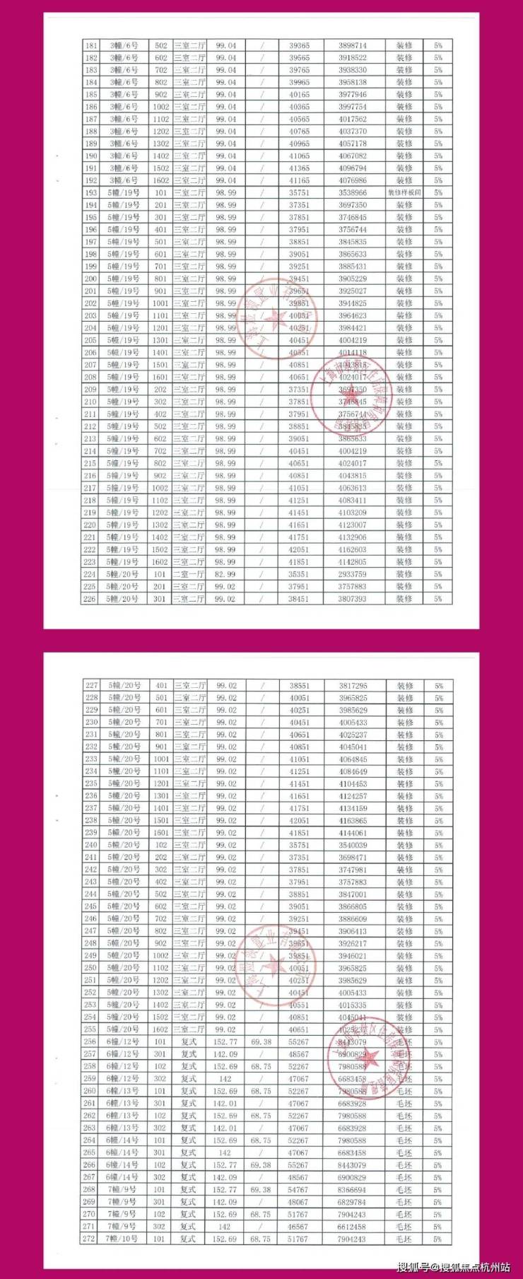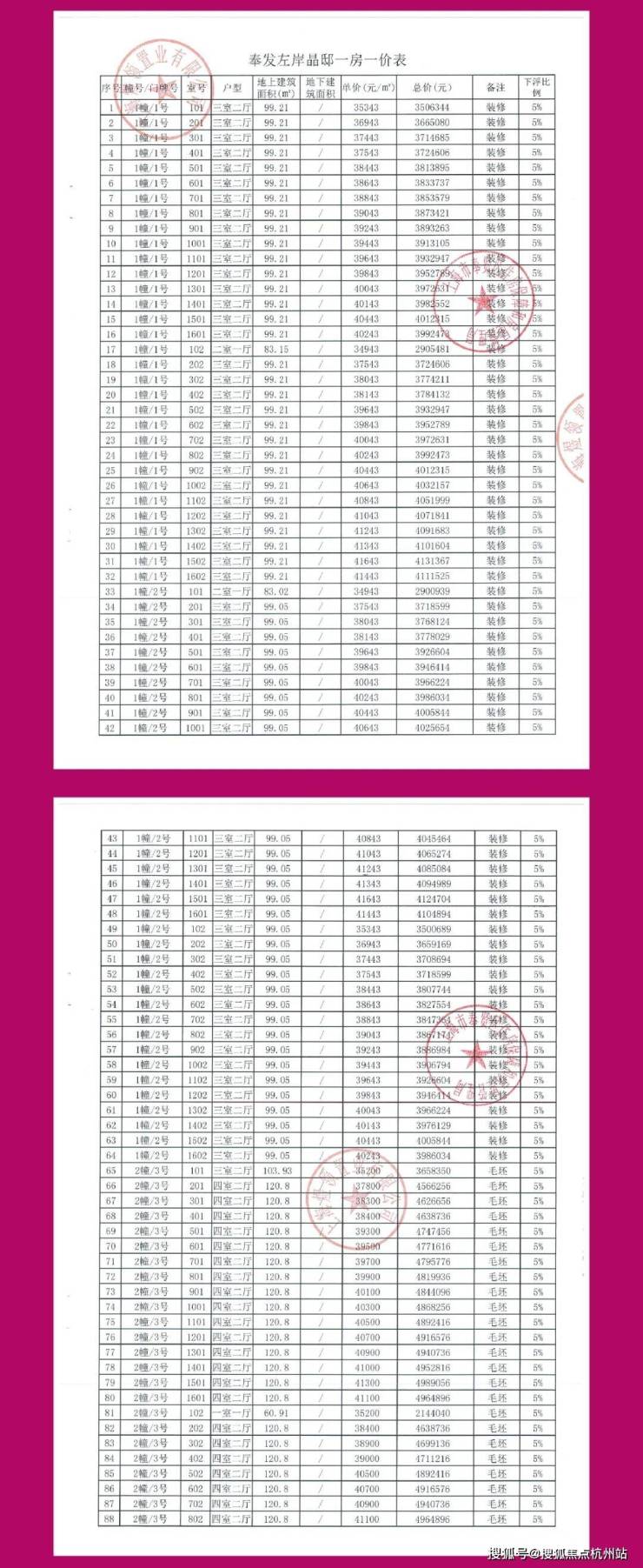 一房一价表发布: