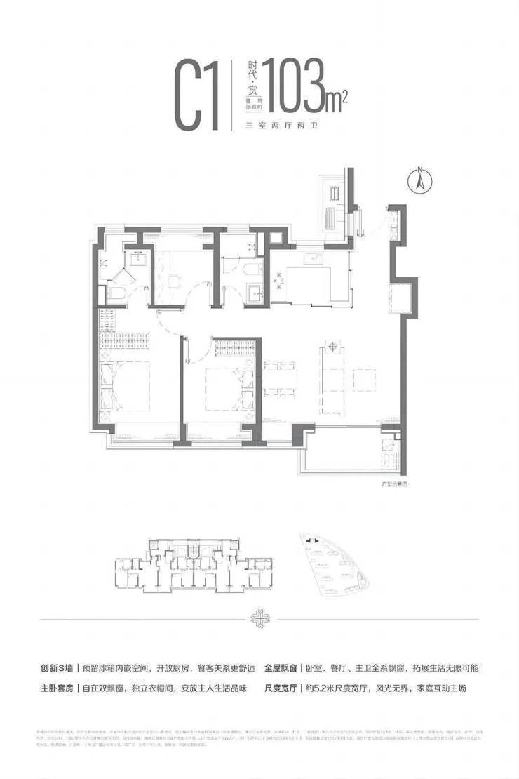 在建面约110㎡ 户型已有的两点之上再度升级,简约面144㎡户型更加匹配三代同堂、二胎之家。