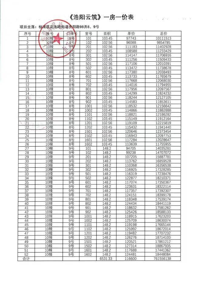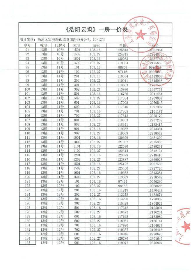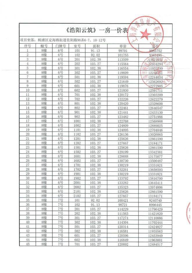 上期一房一价表: