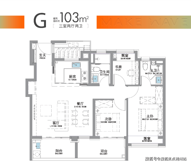 “南向双阳台+南北双飘窗”,构筑真3房户型!