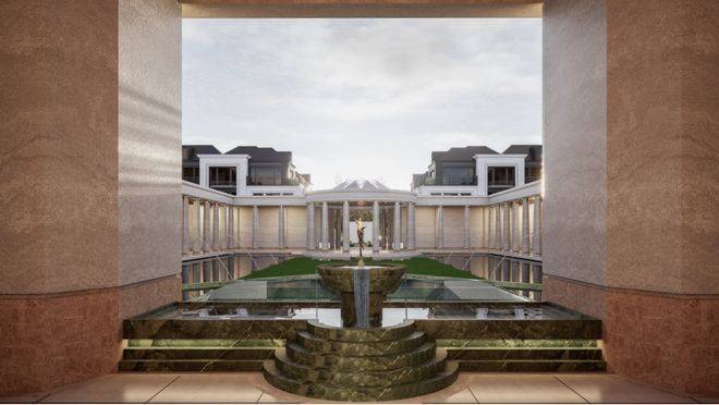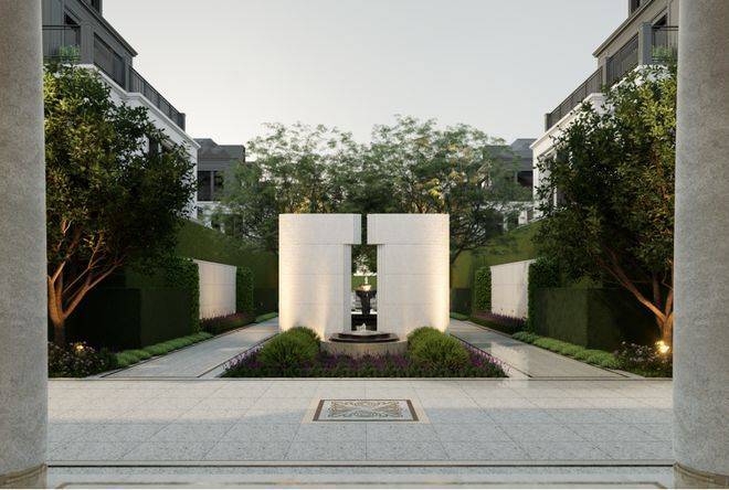 NO.1 煊赫门庭(南门)以凡尔赛宫三泉林为蓝本,约36米奢制格局,勾勒归家的第一道仪仗。
