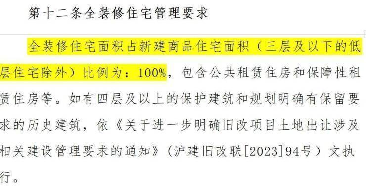 此外,地块要求全装修住宅面积占新建商品住宅面积(三层及以下的低层住宅除外)比例为:100%。