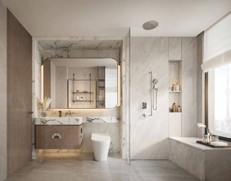 项目户型做到“应飘尽飘”,尤其是边套户型,主卧标配270°转角飘窗,主卫也设计了多角度采光飘窗(常规项目不具备),形成“全景舱”般的视野。