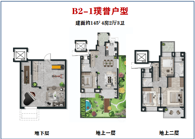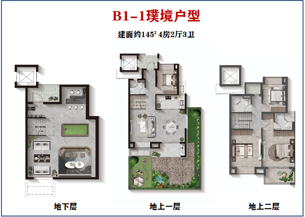 1、建面约123-145 m²叠墅