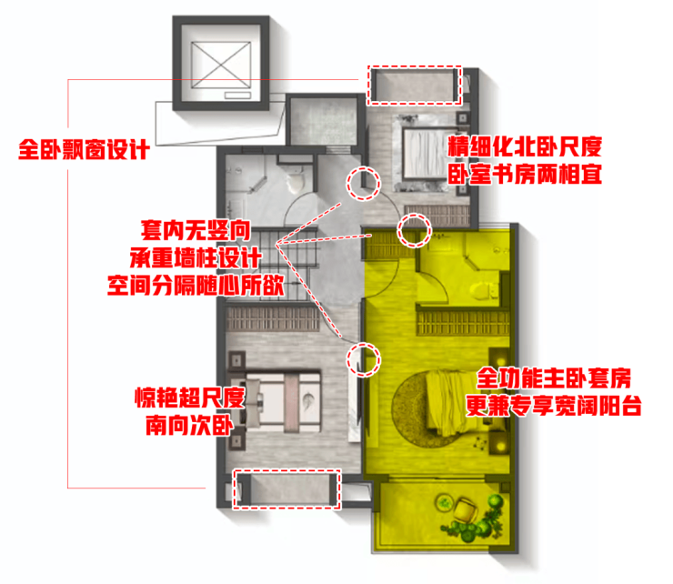 最后,建筑上大量使用无承重墙柱+少梁化设计,业主可以根据自己需求偏好,甚至奇思妙想打造个性化的空间格局。