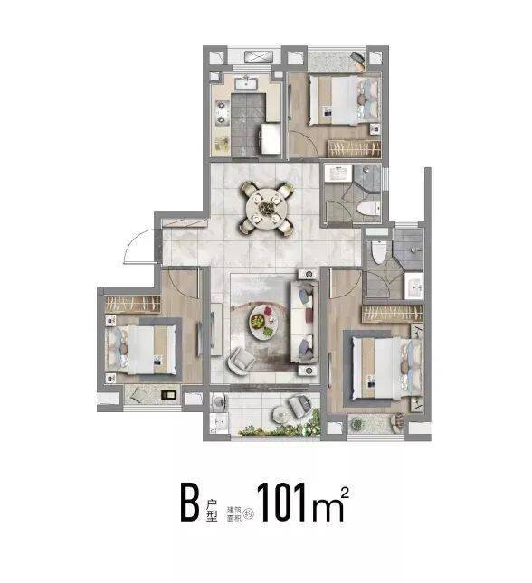回归产品本身,映辰二期户型种类很丰富,建面约77-123㎡多样户型,选择面更广
