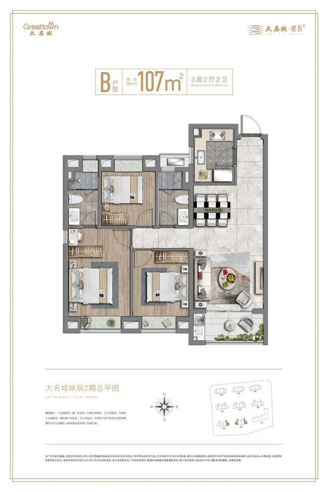 在户型空间上,约3米奢阔层高、正三房、大面宽、多飘窗、阔景阳台等设计,纵享阳光美景,全面提升舒居体验。大名城映辰售楼处电话400-8787-740☑️☑️