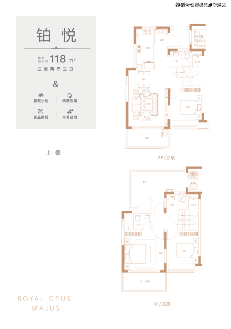 ⭐ 新华御著售楼处热线☎️☎️:400-9966-940✔✔ 上叠118㎡3室2厅3卫户型图▼