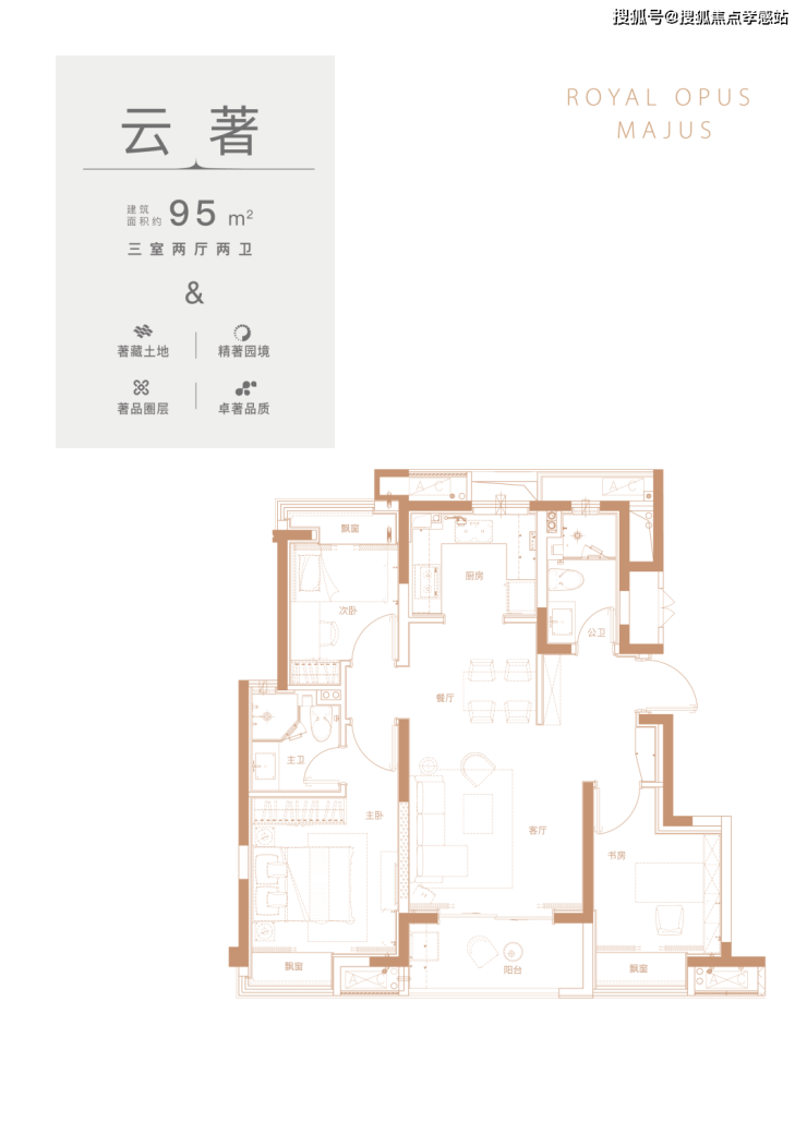 ⭐ 新华御著售楼处热线☎️☎️:400-9966-940✔✔ 约95㎡3室2厅2卫洋房户型图▼