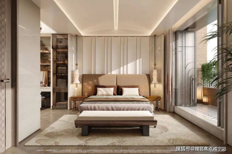 而顶层的主卧大套间,则是墅居生活的至高礼遇——它集步入式衣帽间、豪华卫浴,附带南向约40m²广角全景空中花园,成为一个兼具私密性与景观性的精神自留地。