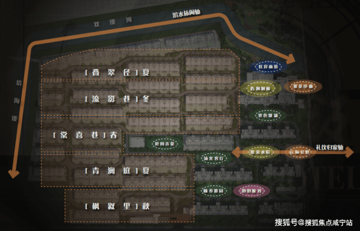 项目利用滨水环绕的特点,规划有“十大剧场、五大主题街巷”的景观概念,为业主带来尊崇感、仪式感兼备的归家体验。