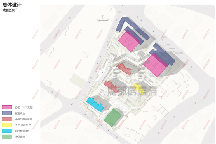 商办组团功能包含可售办公、自持办公、配套商业、文化设施、综合配套, 住宅组团功能包含商品住宅、租赁住宅。