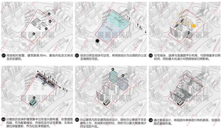 静安鸿庭✅✅售楼处电话:400 - 1010 - 064✅✅基地内需设置两栋办公楼、三栋商品住宅、一栋租赁住宅,此外基地内含5291平方米历史建筑,功能为配套商业及文化设施,含1958平方米文保点,功能为净菜超市及文化设置。