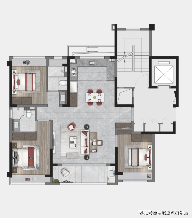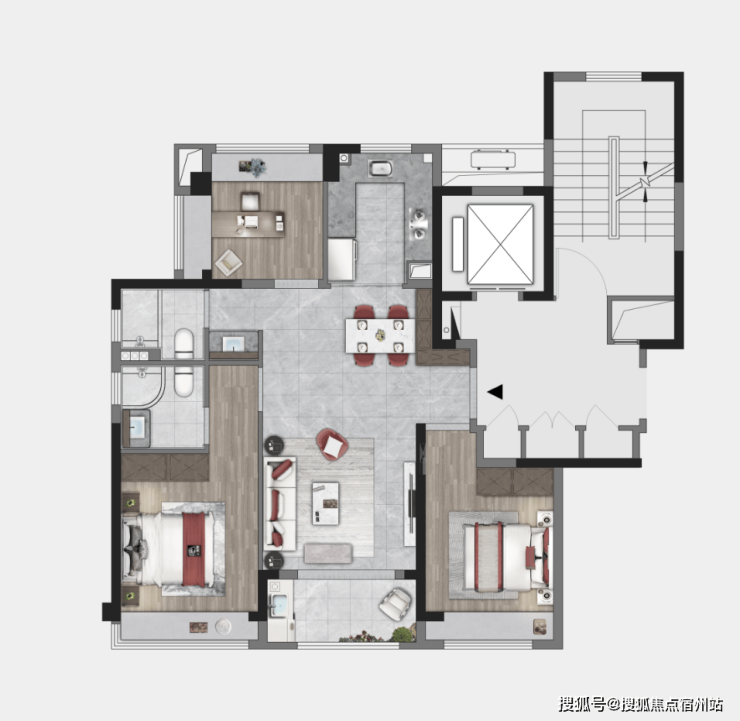 飞机户型设计,减少了非功能区如走廊、拐角的面积。凭借高空间利用率,让家的空间体验“变大”。