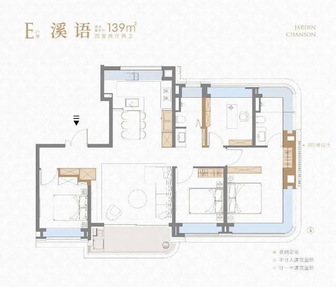 建面约139㎡的4房是集大成的终极改善户型