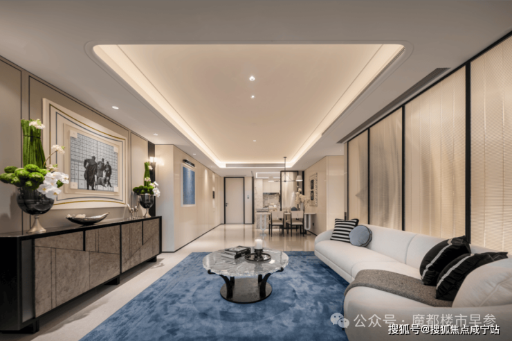 不同于市面上门是门,框是框,墙是墙,看房时“五颜六色”。外滩瑞府室内采用一体化设计语言,实现空间、色彩与材质的协调统一。比如