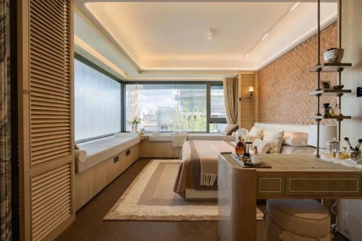 除了原来的标准,还大量选用了鱼肚灰、安第斯雪景、水云沙、雅柏灰...等多种名贵奢石。比如,客厅的电视背景墙、地面、主卫、飘窗等区域选材都升级为奢石。另外,客厅沙发背景墙、卧室背景墙升级为精美皮革,木饰面升级为温润影木,室内的豪宅气质更胜往昔!