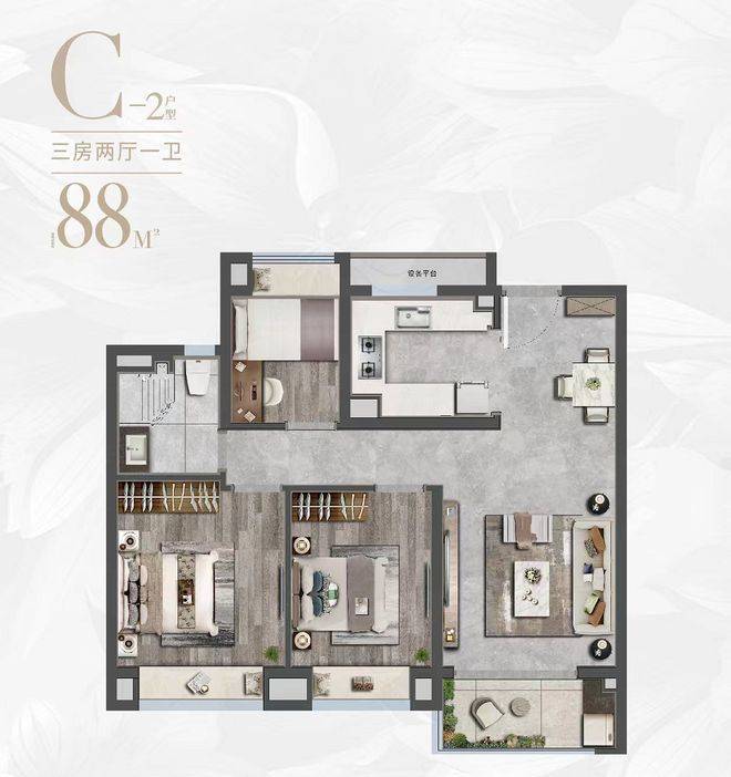 建面约88平3房