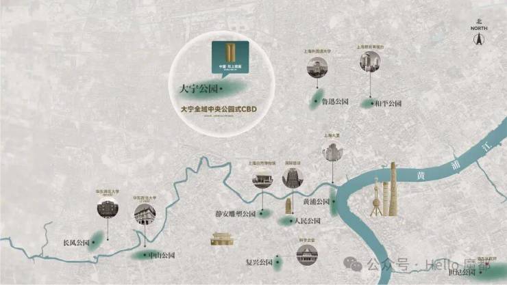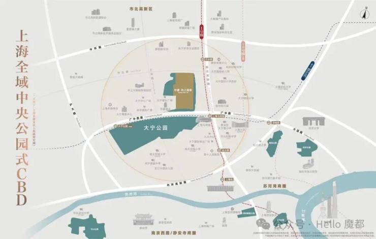 南向约 68万方大宁公园,浦西中心城区最大的城市绿肺,国家 AAA级旅游景区(来源于静安区人民政府官网)