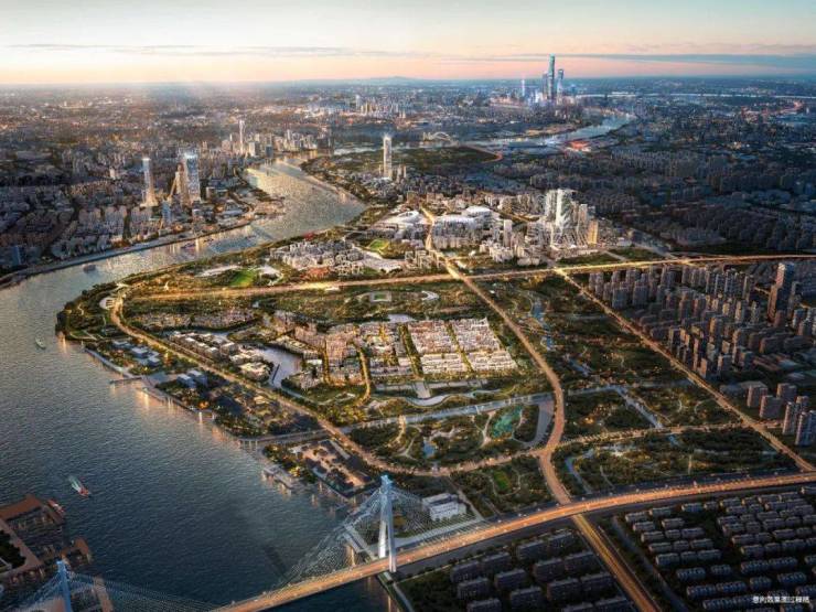 滨江:黄浦江核心段罕见“引水入湾”区域,高密度水网与江湾公园交织。