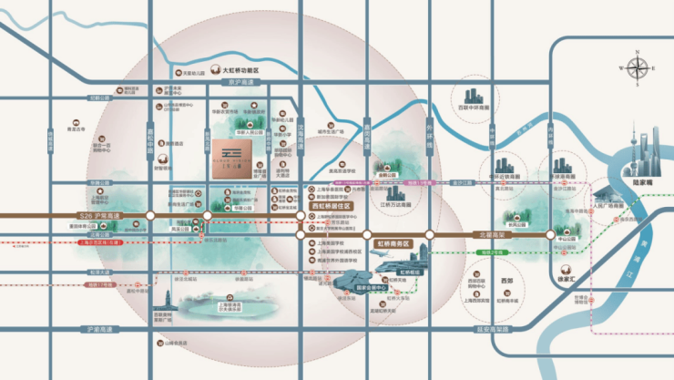 同时,华新,作为是大虹桥商务区的扩展部分之一,也是长三角进入大虹桥的必经之路,定位为大虹桥的配套居住区和功能服务区。