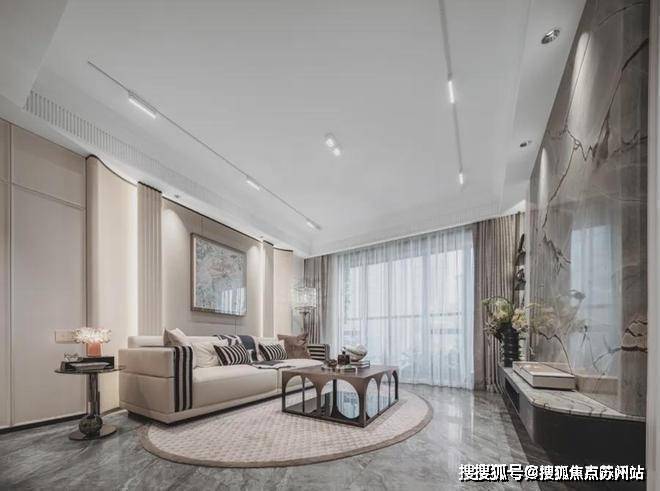 信达信安里预约热线☎:400-8080-420✅✅背景墙比别人更多一点。天然石材的电视背景墙,高级大气;编织皮革的客厅背景墙,充满质感;过度用的是白色木饰纹的背景墙,简约耐看;餐厅处又是白色皮革背景墙,大方优雅。整个空间过渡自然,增加了层次感和高级感。