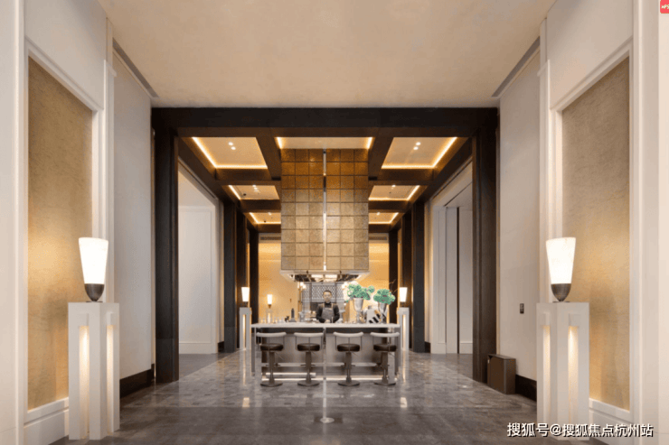 建面约190㎡ C户型 ,两梯两户,私享梯厅,家的玄关尺度,延伸至电梯厅,增加实际使用面积。入户处 大师定制瓷板门牌画 ,私属感满满,打造专属归家仪制。
