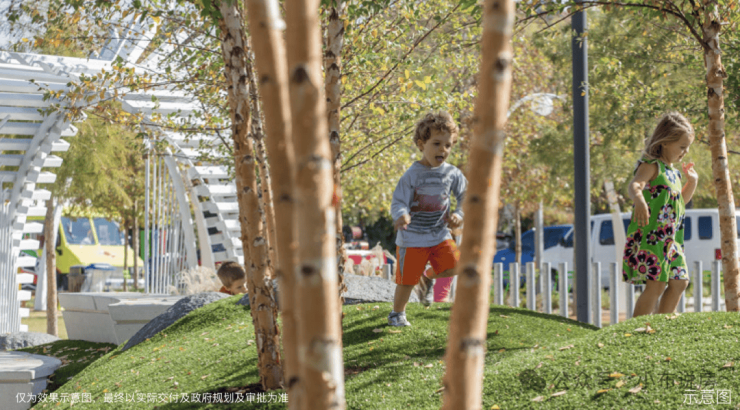 比如林间乐园,为不同年龄规划不同的林间游乐分区,满足全龄活动需求,为亲子交流提供互动娱乐的空间。