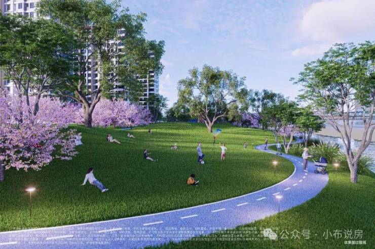 其次,项目东侧有河流和公共绿地,据悉将打造成慢生活休闲滨河带,并融入自然的活动场景,让业主出门就能享受生态、休闲的河岸风光。