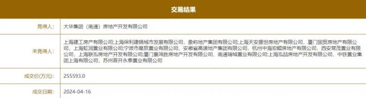 4月16日闵行区浦锦街道MHPO-1302单元35-5地块吸引了华润&南通瑞城置业、中海、金茂、中铁置业、国贸、招商&中旅投资、保利发展&上海建工、建发&联发、安高、大华、象屿&天安、首开12家竞买人参拍!
