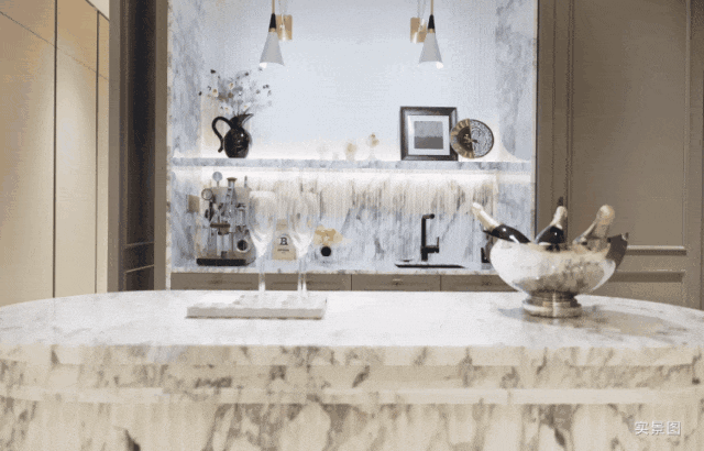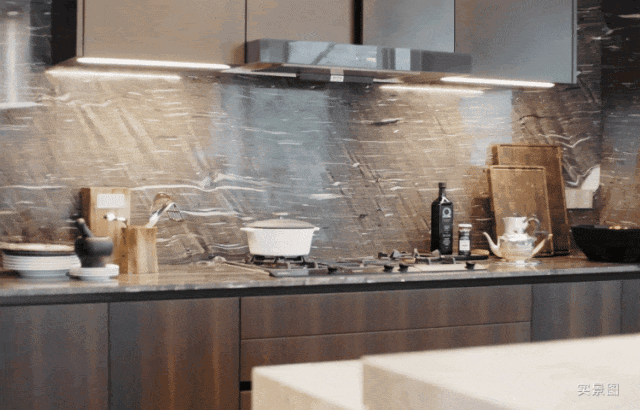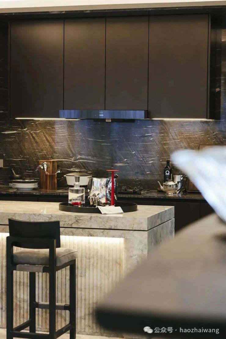 约600平户型中厨橱柜选用意大利奢华家居品牌Boffi精选系列,全球首款模块化无把手厨房系统;