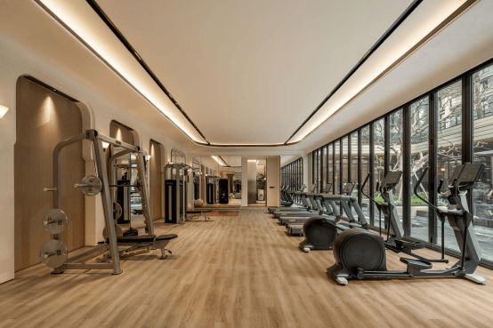 健身房的一大亮点是延续了项目对“她享主义”的设计,除了传统健身器材外,还打造了女性训练区,不仅设计风格更柔和,专属女性的拉伸区也更加符合女性健身习惯。