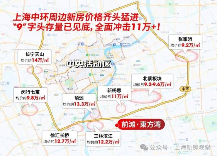 三林滨江在空间上与前滩更为贴近,但新房项目大多与轨交距离过远,且价格早已突破12万/㎡,总价就更高了。