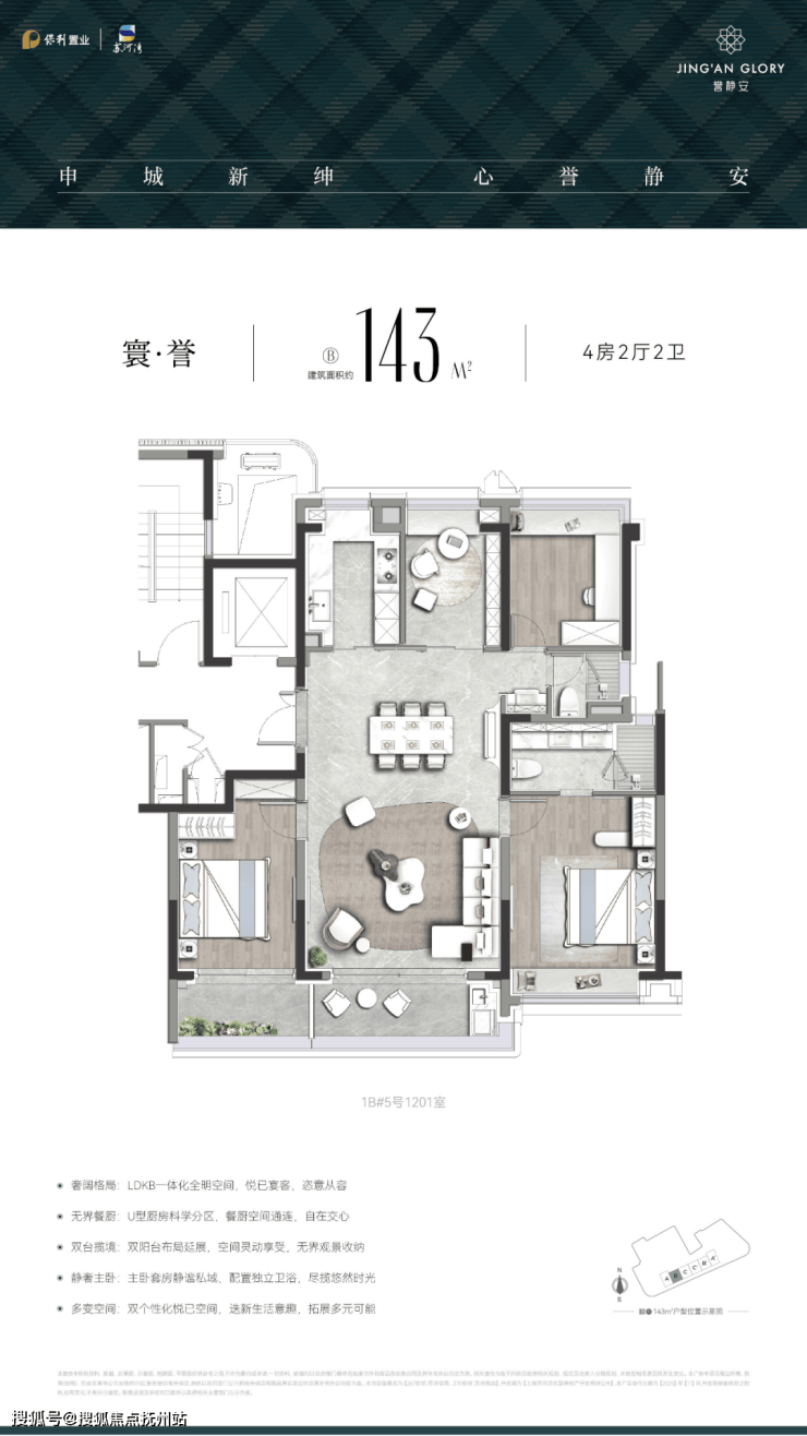誉静安此次首推的96套建面约143㎡四房产品,精准切中了改善家庭“一步到位”的核心需求。