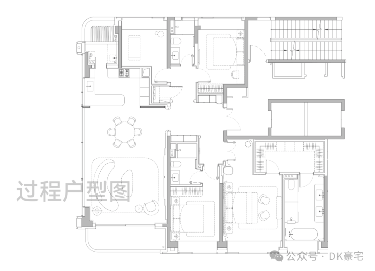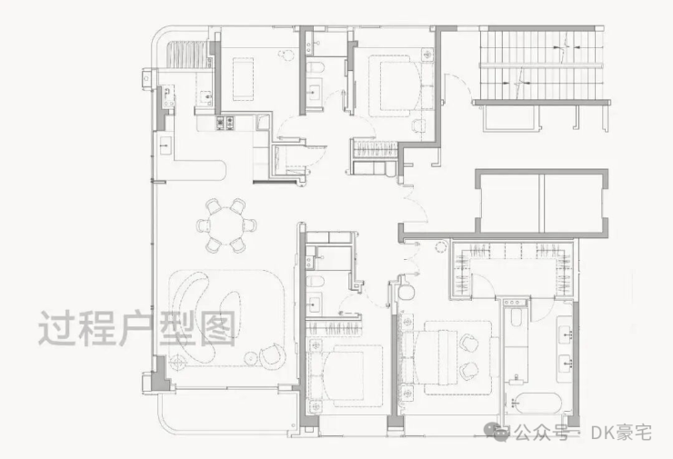 通过场景式布局,以中央会客厅为枢纽,将各大功能区有机串联,形成一个充满活力的、适合全家使用的社交型会所。